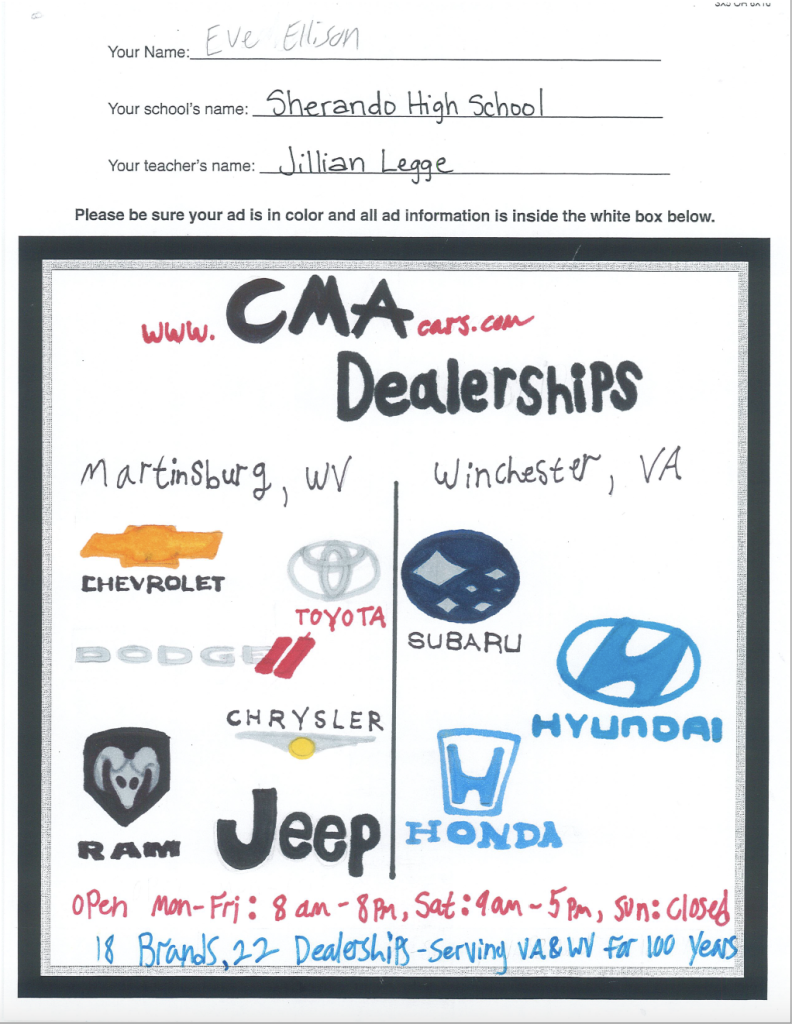 Below is the winner that was chosen by the CMA team! This was chosen because they correctly had the right makes under the right locations and they were clean and legible and made the name and website at the top look good.