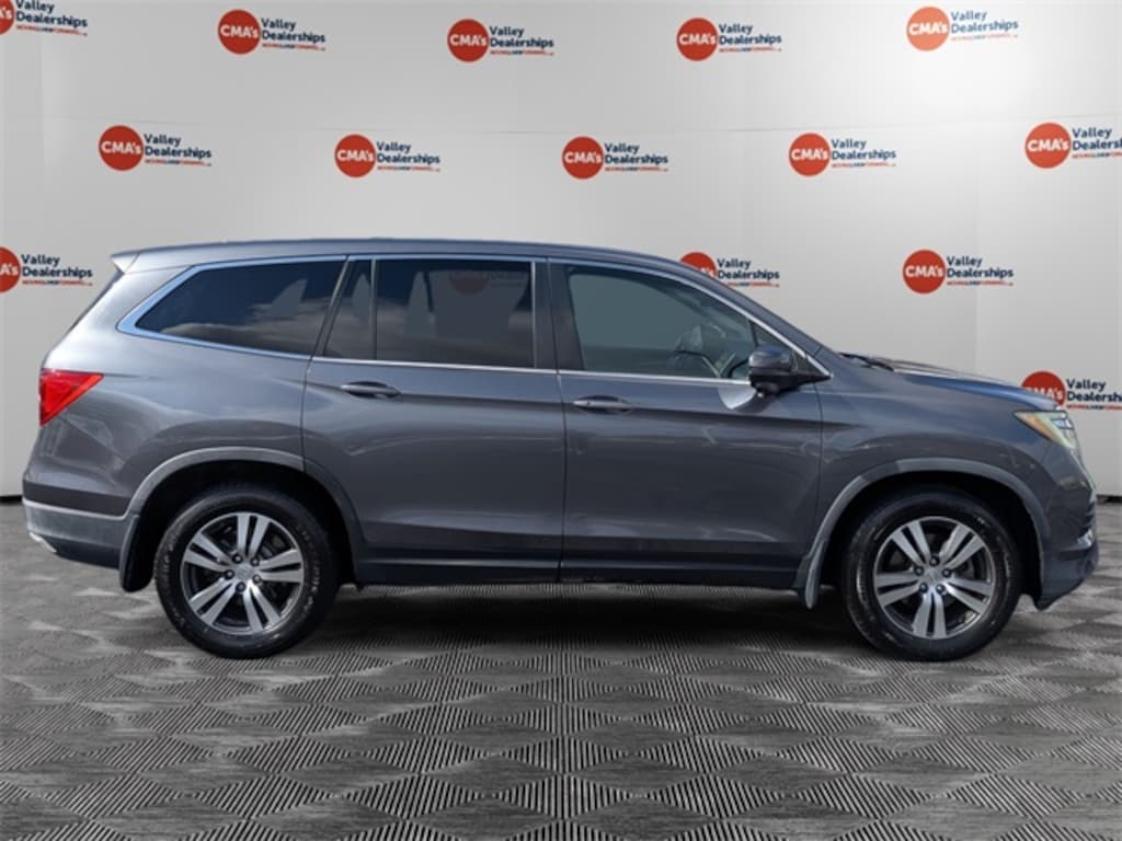 *HONDA CERTIFIED*, *INCLUDES WARRANTY*, *RECENT TRADE IN*, Pilot EX-L w/Navigation, HondaTrue Used Certified, 4D Sport Utility, 3.5L V6 24V SOHC i-VTEC, 6-Speed Automatic, FWD, Leather, 18" Alloy Wheels, 3rd row seats: split-bench, 4-Wheel Disc Brakes, 4.25 Axle Ratio, 7 Speakers, ABS brakes, Air Conditioning, Alloy wheels, AM/FM radio: SiriusXM, Auto-dimming Rear-View mirror, Automatic temperature control, Brake assist, Bumpers: body-color, Compass, Delay-off headlights, Driver door bin, Driver vanity mirror, Dual front impact airbags, Dual front side impact airbags, Electronic Stability Control, Emergency communication system: HondaLink Assist, Exterior Parking Camera Rear, Four wheel independent suspension, Front anti-roll bar, Front Bucket Seats, Front Center Armrest, Front dual zone A/C, Front fog lights, Front reading lights, Fully automatic headlights, Garage door transmitter: HomeLink, Heated Front Bucket Seats, Heated front seats, Illuminated entry, Leather Shift Knob, Leather-Trimmed Seats, Low tire pressure warning, Navigation System, Occupant sensing airbag, Outside temperature display, Overhead airbag, Overhead console, Panic alarm, Passenger door bin, Passenger vanity mirror, Power door mirrors, Power driver seat, Power Liftgate, Power moonroof, Power passenger seat, Power steering, Power windows, Radio data system, Radio: AM/FM Audio System, Rear air conditioning, Rear anti-roll bar, Rear reading lights, Rear seat center armrest, Rear window defroster, Rear window wiper, Remote keyless entry, Security system, SiriusXM Radio, Speed control, Speed-sensing steering, Speed-Sensitive Wipers, Split folding rear seat, Spoiler, Steering wheel mounted audio controls, Tachometer, Telescoping steering wheel, Tilt steering wheel, Traction control, Trip computer, Variably intermittent wipers, Pilot EX-L w/Navigation, 4D Sport Utility, 3.5L V6 24V SOHC i-VTEC, 6-Speed Automatic, FWD, Leather.