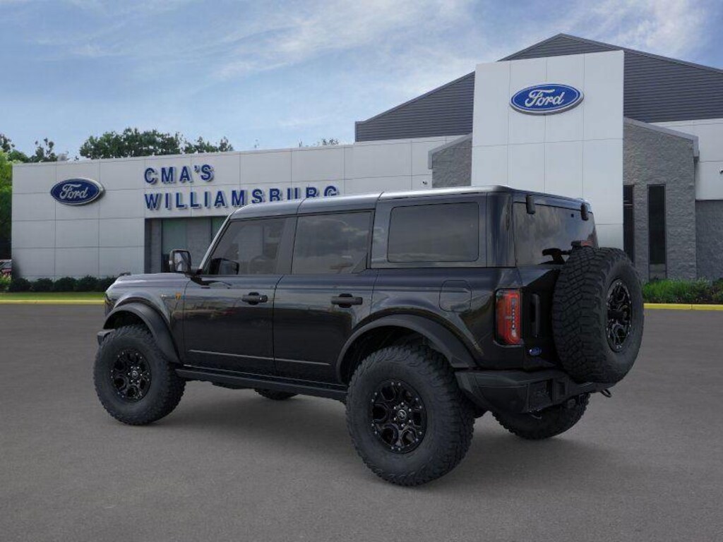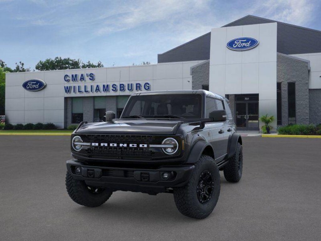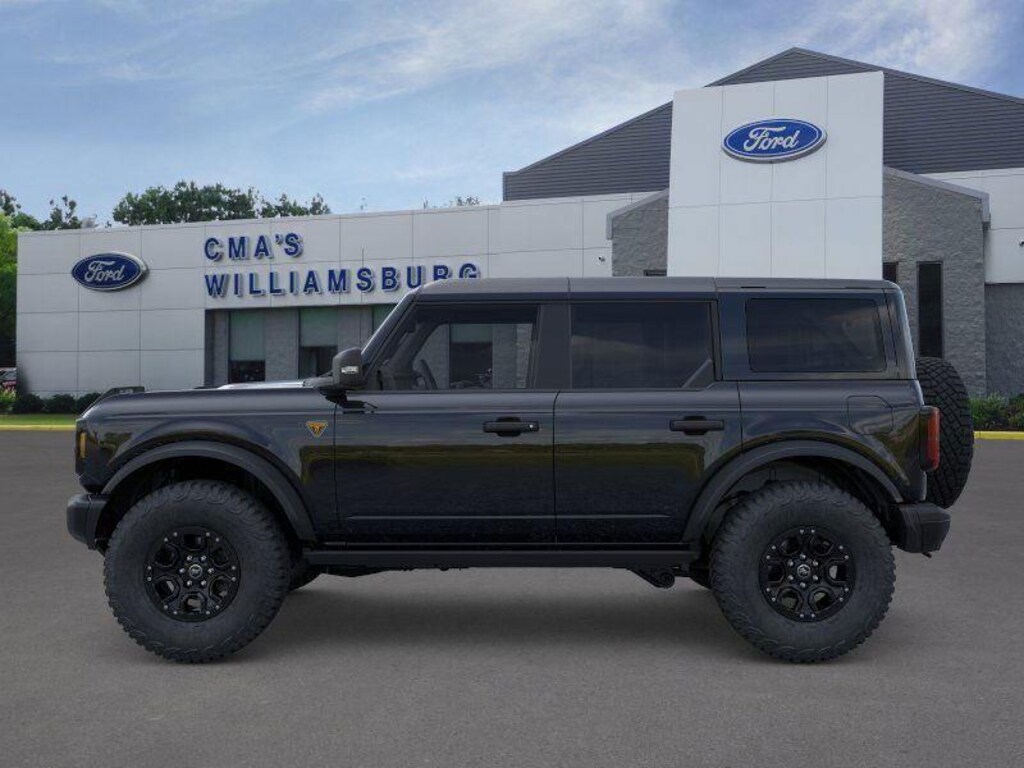 - Includes black molded-in-color (MIC) door handles, black molded-in-color (MIC) fender flares, black-painted molded-in-color (MIC) grille with white Bronco lettering, black molded-in-color (MIC) sideview mirror caps, black appearance graphics package, 17 inch black high gloss painted aluminum wheels, and Shadow Black painted hard top.