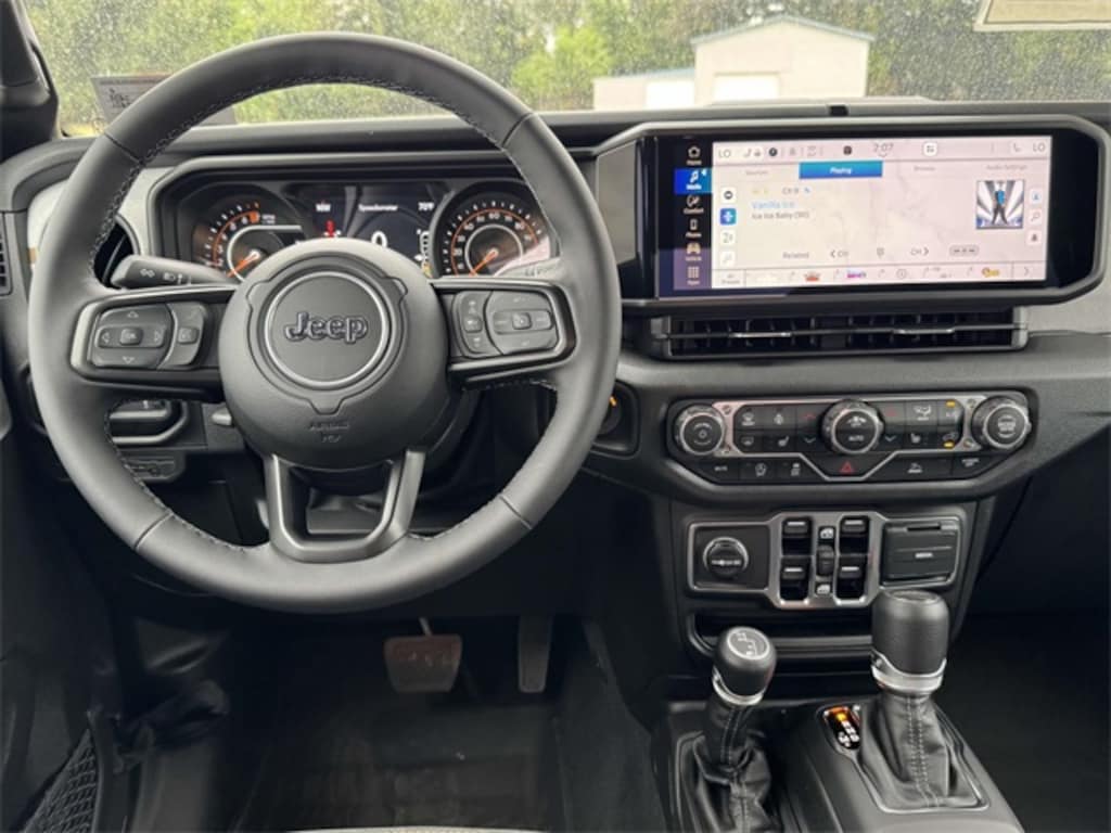 110 MPH Vehicle Max Speed Calibration, 12.3" Touchscreen Display, 3.73 Rear Axle Ratio, 4-Wheel Disc Brakes, 4G LTE Wi-Fi Hot Spot, 8 Speakers, ABS brakes, Advanced Brake Assist, Air Conditioning, Alexa Built-In, AM/FM radio: SiriusXM, Apple CarPlay, Apple CarPlay/Android Auto, Automatic Headlamps, Brake assist, Cloth Low-Back Bucket Seats, Compass, Connectivity - US/Canada, Convenience Group, Corning Gorilla Glass, Daytime Running Lamp System, Deep Tint Sunscreen Windows, Delay-off headlights, Driver door bin, Driver vanity mirror, Dual front impact airbags, Dual front side impact airbags, Electronic Stability Control, Emergency/Assistance Call, Enhanced Adaptive Cruise Control, Front anti-roll bar, Front Bucket Seats, Front Center Armrest w/Storage, Front Door Locks 2-Door Passive Entry, Front fog lights, Front License Plate Bracket, Front reading lights, Full Speed Forward Collision Warning Plus, Google Android Auto, Heated Front Seats, Heated Steering Wheel, Illuminated entry, Integrated roll-over protection, Low tire pressure warning, Manufacturer's Statement of Origin, MOPAR All-Weather Slush Mats, Mopar Black Tubular Side Steps, MOPAR Satin Black Grille, MOPAR Spray In Bedliner, Normal Duty Plus Suspension, Normal Duty Suspension, Occupant sensing airbag, Outside temperature display, Overhead airbag, Panic alarm, ParkView Rear Back-Up Camera, Passenger door bin, Passenger vanity mirror, Power Heated Mirrors, Power steering, Power windows, Premium Wrapped Steering Wheel, Quick Order Package 24S Sport S, Radio data system, Radio: Uconnect 5 w/12.3" Display, Rear anti-roll bar, Rear reading lights, Remote keyless entry, Remote Start System, Security Alarm, Speed control, Split folding rear seat, Steering wheel mounted audio controls, Sun Visors w/Illuminated Vanity Mirrors, Tachometer, Telescoping steering wheel, Tilt steering wheel, Traction control, Trip computer, Universal Garage Door Opener, USB Host Flip, Variably intermittent wipers, Voltmeter, Wheels: 17" x 7.5" Black Steel Styled, Wheels: 17" x 7.5" Gray.