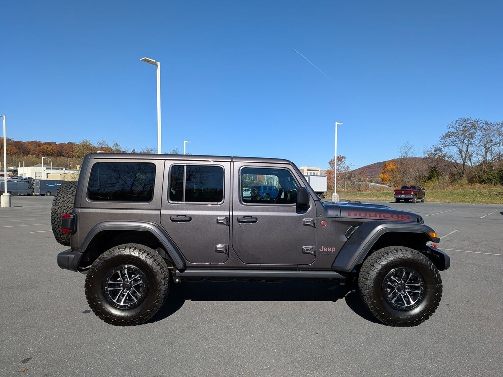 - GRANITE CRYSTAL METALLIC CLEARCOAT,4.56 REAR AXLE RATIO,WHEELS: 17 X 8 MACHINED W/BLACK POCKETS,TECHNOLOGY GROUP -inc: SiriusXM Radio Service 12.3 Touchscreen Display Integrated Off-Road Camera HD Radio Rear View Auto Dim Mirror Integrated Voice Command w/Bluetooth Radio: Uconnect 5 Nav w/12.3 Display GPS Navigation SiriusXM w/360L Connected Travel & Traffic Services,TRANSMISSION: 8-SPEED AUTOMATIC (850RE) -inc: Adaptive Cruise Control w/Stop Selec-Speed Control,MOPAR ALL-WEATHER FLOOR MATS,ENGINE: 3.6L V6 24V VVT UPG I W/ESS (STD),35 TIRE SUSPENSION,XTREME 35 TIRE PACKAGE -inc: Tires: LT315/70R17C 113/110S Wheel Flare Extensions MOPAR Tire Relocation Kit Anti-Lock 4-Wheel Disc Perf Brakes 35 Tire Suspension MOPAR Hinge-Gate Reinforcement MOPAR Jack Spacer Wheels: 17 x 8 Machined w/Black Pockets 4.56 Rear Axle Ratio GVWR: 6 250 lbs,QUICK ORDER PACKAGE 24R RUBICON -inc: Engine: 3.6L V6 24V VVT UPG I w/ESS Transmission: 8-Speed Automatic (850RE),BODY COLOR 3-PIECE HARD TOP -inc: Freedom Panel Storage Bag Rear Window Defroster Rear Window Wiper/Washer,BODY COLOR RUBICON HIGHLINE FLARE,BLACK NAPPA LEATHER SEATS -inc: Leather Wrapped Shift Knob Premium Door Trim Panel Power Adjust 8-Way Driver Seat Power 4-Way Passenger Lumbar Adjust Power Adjust 8-Way Front Passenger Seat Leather Wrapped Park Brake Handle Power 4-Way Driver Lumbar Adjust,JEEP TRAIL RATED KIT,TIRES: LT315/70R17C 113/110S,CONVENIENCE GROUP -inc: Heated Steering Wheel Universal Garage Door Opener Heated Front Seats,SAFETY GROUP -inc: ParkSense Rear Park Assist System Auto High Beam Headlamp Control Blind Spot & Cross Path Detection,MOPAR HINGE-GATE REINFORCEMENT,RADIO: UCONNECT 5 NAV W/12.3 DISPLAY,ALPINE PREMIUM AUDIO SYSTEM,FRONT LICENSE PLATE BRACKET,GVWR: 6 250 LBS,Four Wheel Drive,Locking/Limited Slip Differential,Locking/Limited Slip Differential,Tow Hitch,Power Steering,ABS,4-Wheel Disc Brakes,Brake Assist,Locking/Limited Slip Differential,Brake Actuated Limited Slip Differential,Aluminum Wheels,Tires - Front All-Terrain,Tires - Rear All-Terrain,Conventional Spare Tire,Tow Hooks,Tow Hooks,Heated Mirrors,Power Mirror(s),Privacy Glass,Intermittent Wipers,Variable Speed Intermittent Wipers,Rollover Protection Bars,Convertible Soft Top,Power Door Locks,Daytime Running Lights,Automatic Headlights,LED Headlights,Fog Lamps,AM/FM Stereo,Satellite Radio,Bluetooth Connection,Requires Subscription,MP3 Capability,Steering Wheel Audio Controls,Auxiliary Audio Input,Bluetooth Connection,Driver Adjustable Lumbar,Driver Adjustable Lumbar,Pass-Through Rear Seat,Rear Bench Seat,Adjustable Steering Wheel,Trip Computer,Power Windows,Keyless Entry,Power Door Locks,Keyless Start,Keyless Entry,Power Door Locks,Cruise Control,Adaptive Cruise Control,Climate Control,Multi-Zone A/C,A/C,Bucket Seats,Driver Vanity Mirror,Passenger Vanity Mirror,Driver Illuminated Vanity Mirror,Passenger Illuminated Visor Mirror,Floor Mats,Smart Device Integration,Smart Device Integration,WiFi Hotspot,Smart Device Integration,Power Windows,Power Door Locks,Trip Computer,Security System,Immobilizer,Traction Control,Stability Control,Traction Control,Front Side Air Bag,Telematics,Requires Subscription,Front Collision Mitigation,Tire Pressure Monitor,Driver Air Bag,Passenger Air Bag,Front Head Air Bag,Rear Head Air Bag,Passenger Air Bag Sensor,Child Safety Locks,Back-Up Camera