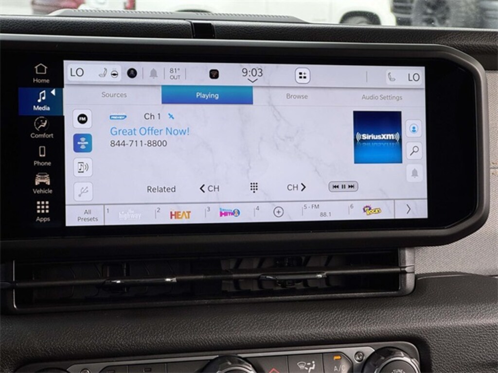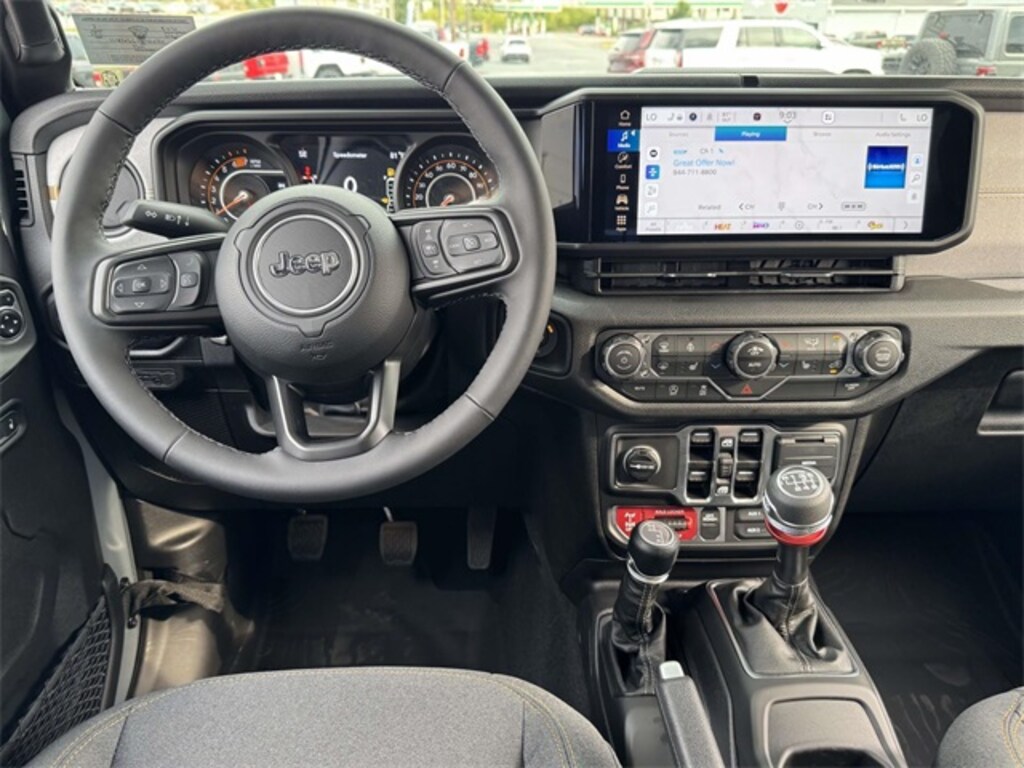 110 MPH Vehicle Max Speed Calibration, 2-Door Passive Entry, Front Door Locks, 4-Wheel Disc Brakes, 4-Wheel Drive Swing Gate Decal, 7 & 4 Pin Wiring Harness, 8 Speakers, 97 MPH Vehicle Max Speed Calibration, ABS brakes, Advanced Brake Assist, Air Conditioning, Air Conditioning w/Auto Temperature Control, Air Filtering, AM/FM radio: SiriusXM, Apple CarPlay/Android Auto, Automatic Headlamps, Aux Battery, Auxiliary Switches, Black 3-Piece Hard Top, Black Grille, Brake assist, Class II Receiver Hitch, Cloth Low-Back Bucket Seats, Cluster 7.0" TFT Color Display, Compass, Convenience Group, Conventional Differential Front Axle, Corning Gorilla Glass, Dana M210 Wide HD Tube Front Axle, Dana M220 Wide Rear Axle, Daytime Running Lamps LED Accents, Deep Tint Sunscreen Windows, Delay-off headlights, Driver door bin, Driver vanity mirror, Dual front impact airbags, Dual front side impact airbags, E-Locker Rear Axle, Electronic Stability Control, Emergency/Assistance Call, Enhanced Adaptive Cruise Control, Freedom Panel Storage Bag, Front anti-roll bar, Front Bucket Seats, Front Center Armrest w/Storage, Front fog lights, Front LED Fog Lamps, Front reading lights, Full Speed Forward Collision Warning Plus, Heated Front Seats, Heated Steering Wheel, Illuminated entry, Injection Molded Black Rear Bumper, Integrated roll-over protection, LED Premium Reflector Headlamps, Low tire pressure warning, Mold In Color Bumper w/Gloss Black, Molded in Color Rubicon Highline Flare, MOPAR All-Weather Floor Mats, Non-Lock Fuel Cap w/o Discriminator, Normal Duty Suspension, Occupant sensing airbag, Off-Road Plus Mode, Outside temperature display, Overhead airbag, Panic alarm, ParkView Rear Back-Up Camera, Passenger door bin, Passenger vanity mirror, Power Heated Mirrors, Power steering, Power windows, Premium Wrapped Steering Wheel, Quick Order Package 23W Willys, Radio data system, Radio: Uconnect 5 w/12.3" Display, Rear anti-roll bar, Rear reading lights, Rear Window Defroster, Rear Window Wiper/Washer, Remote keyless entry, Remote Start System, Security Alarm, Speed control, Split folding rear seat, Steering wheel mounted audio controls, Stop-Start Dual Battery System, Sun Visors w/Illuminated Vanity Mirrors, Tachometer, Telescoping steering wheel, Tilt steering wheel, Traction control, Trip computer, Universal Garage Door Opener, Variably intermittent wipers, Wheels: 17" x 7.5" Black Steel Styled, Wheels: 17" x 7.5" Painted Black, Willy's Suspension, Willys Hood Decal.
