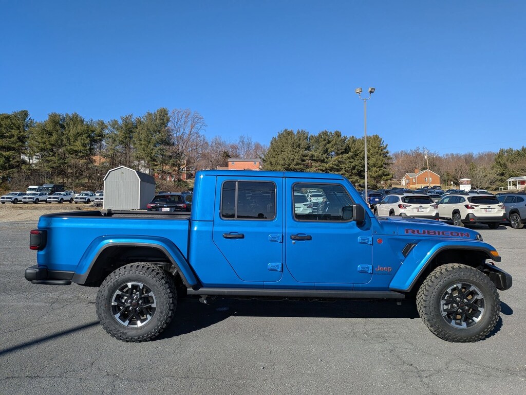 - UCONNECT 5 NAV W/12.3 DISPLAY,MOPAR PERFORMANCE SATIN BLACK GRILLE,MOPAR SPRAY IN BEDLINER,ALPINE PREMIUM AUDIO SYSTEM,MYFLEXCARE SERVICE PLAN,BODY COLOR 3-PIECE HARD TOP -inc: Freedom Panel Storage Bag Rear Window Defroster Rear Sliding Window,MOPAR ALL-WEATHER SLUSH MATS,CONVENIENCE GROUP -inc: Heated Steering Wheel Remote Start System Universal Garage Door Opener Heated Front Seats,HYDRO BLUE PEARLCOAT,8-SPEED AUTOMATIC 850RE TRANSMISSION (STD),SAFETY GROUP -inc: ParkSense Rear Park Assist System Auto High Beam Headlamp Control Blind Spot & Cross Path Detection,MANUFACTURER'S STATEMENT OF ORIGIN,TECHNOLOGY GROUP -inc: Integrated Off-Road Camera HD Radio Connected Travel & Traffic Services Rear View Auto Dim Mirror Integrated Voice Command w/Bluetooth Uconnect 5 Nav w/12.3 Display GPS Navigation,LT285/70R17C BSW M/T TIRES,3.6L V6 24V VVT UPG I ENGINE W/ESS (STD),QUICK ORDER PACKAGE 24R RUBICON -inc: 3.6L V6 24V VVT UPG I Engine w/ESS 8-Speed Automatic 850RE Transmission Power Dome Dual Vented Hood,BODY COLOR RUBICON HIGHLINE FLARE,FRONT LICENSE PLATE BRACKET,17 X 7.5 MACHINED WHEELS W/BLACK POCKETS,BLACK POWER ADJUST NAPPA LEATHER SEATS -inc: Leather Wrapped Shift Knob Premium Door Trim Panel Power Adjust 8-Way Driver Seat Power 4-Way Passenger Lumbar Adjust Power Adjust 8-Way Front Passenger Seat Full Length Floor Console Premium Armrest Leather Wrapped Park Brake Handle Power 4-Way Driver Lumbar Adjust Rear Armrest w/Cupholder Seat,Four Wheel Drive,Locking/Limited Slip Differential,Locking/Limited Slip Differential,Tow Hitch,Power Steering,ABS,4-Wheel Disc Brakes,Brake Assist,Locking/Limited Slip Differential,Brake Actuated Limited Slip Differential,Aluminum Wheels,Tires - Front All-Terrain,Tires - Rear All-Terrain,Conventional Spare Tire,Tow Hooks,Tow Hooks,Heated Mirrors,Power Mirror(s),Intermittent Wipers,Variable Speed Intermittent Wipers,Privacy Glass,Rollover Protection Bars,Convertible Soft Top,Power Door Locks,Daytime Running Lights,Automatic Headlights,LED Headlights,Fog Lamps,AM/FM Stereo,Satellite Radio,Bluetooth Connection,Requires Subscription,MP3 Capability,Steering Wheel Audio Controls,Auxiliary Audio Input,Bluetooth Connection,Driver Adjustable Lumbar,Driver Adjustable Lumbar,Pass-Through Rear Seat,Rear Bench Seat,Adjustable Steering Wheel,Trip Computer,Power Windows,Keyless Entry,Power Door Locks,Keyless Entry,Power Door Locks,Keyless Start,Cruise Control,Adaptive Cruise Control,Climate Control,Multi-Zone A/C,A/C,Bucket Seats,Driver Vanity Mirror,Passenger Vanity Mirror,Driver Illuminated Vanity Mirror,Passenger Illuminated Visor Mirror,Floor Mats,Smart Device Integration,Smart Device Integration,WiFi Hotspot,Power Windows,Power Door Locks,Trip Computer,Immobilizer,Security System,Traction Control,Stability Control,Traction Control,Front Side Air Bag,Telematics,Requires Subscription,Front Collision Mitigation,Tire Pressure Monitor,Driver Air Bag,Passenger Air Bag,Front Head Air Bag,Rear Head Air Bag,Passenger Air Bag Sensor,Child Safety Locks,Back-Up Camera