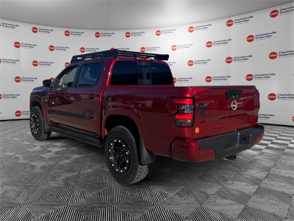 Cardinal Red Metallic Tricoat 2025 Nissan Frontier SV 4WD 9-Speed Automatic with Overdrive 3.8L DI DOHC 24V V6 4WD, 120V Power Outlet in Bed, 120V Power Outlet in Rear Center Console, 17" Alloy Wheels, 3.692 Axle Ratio, 4-Wheel Disc Brakes, 6 Speakers, ABS brakes, Air Conditioning, Alloy wheels, AM/FM radio: SiriusXM, Anti-whiplash front head restraints, Auto High-beam Headlights, Bed Under-Rail Lighting, Blind Spot Warning, Brake assist, Bumpers: body-color, Carpeted Floor Mats, Delay-off headlights, Driver door bin, Driver vanity mirror, Dual front impact airbags, Dual front side impact airbags, Electronic Stability Control, Electronic Tailgate Lock, Emergency communication system, Front anti-roll bar, Front Bucket Seats, Front Center Armrest, Front Halogen Fog Lights, Front reading lights, Front wheel independent suspension, Fully automatic headlights, Heated Front Seats, Heated Leather Steering Wheel, Heated Outside Mirrors, HVAC - Dual-Zone Front Auto A/C, I-Key w/Request Switches on O/S Handles, Illuminated entry, Illuminated Locking Glove Box w/Damper, Knee airbag, Leather Shift Lever, Low tire pressure warning, Nissan Tailgate Audio by Kicker w/Utili-Track Brkt, NissanConnect Services & Wi-Fi Hotspot Delete, Occupant sensing airbag, Overhead airbag, Overhead console, Panic alarm, Passenger door bin, Passenger vanity mirror, Power door mirrors, Power driver seat, Power steering, Power windows, Premium Cloth Seat Trim, Premium Paint, Radio data system, Radio: SXM/AM/FM/AUX/USB Audio System, Rear anti-roll bar, Rear seat center armrest, Rear side impact airbag, Rear step bumper, Remote Engine Starter, Remote keyless entry, Security system, Speed control, Speed-sensing steering, Splash Guards, Split folding rear seat, Spray-In Bedliner, Steering wheel mounted audio controls, SV Convenience Package, Tachometer, Telematics Delete Package, Telescoping steering wheel, Tilt steering wheel, Tow Package (T11), Tow/Haul Mode Switch, Traction control, Trailer Hitch w/Wiring Harness, Trip computer, Utili-Track System, Variably intermittent wipers, Voltmeter, Wireless Apple CarPlay/Wireless Android Auto, 4WD.