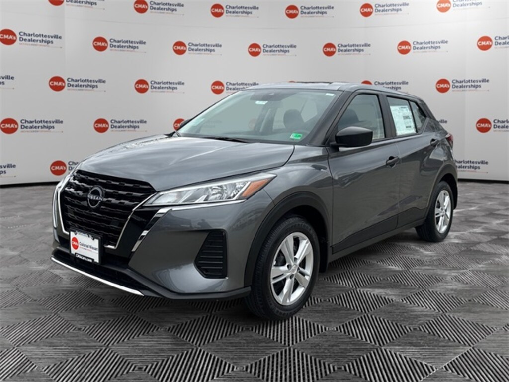 Gun Metallic 2025 Nissan Kicks Play S FWD CVT with Xtronic 1.6L 4-Cylinder DOHC 16V 16" Steel Wheels w/Full Covers, 6 Speakers, ABS brakes, Air Conditioning, AM/FM radio, Apple CarPlay/Android Auto, Auto High-beam Headlights, Blind Spot Warning, Brake assist, Bumpers: body-color, Carpeted Floor Mats w/Cargo Mat, Center Armrest w/Storage, Cloth Seat Trim w/Single Stitch, Driver door bin, Driver vanity mirror, Driver's Seat Mounted Armrest, Dual front impact airbags, Dual front side impact airbags, Electronic Stability Control, Front anti-roll bar, Front Bucket Seats, Front reading lights, Front wheel independent suspension, Fully automatic headlights, Illuminated entry, Knee airbag, Low tire pressure warning, Occupant sensing airbag, Outside temperature display, Overhead airbag, Panic alarm, Passenger door bin, Passenger vanity mirror, Power door mirrors, Power steering, Power windows, Radio data system, Radio: AM/FM Audio System, Rear Parking Sensors, Rear reading lights, Rear side impact airbag, Rear window defroster, Rear window wiper, Remote keyless entry, Speed control, Splash Guards Grain (4 Piece), Split folding rear seat, Sport steering wheel, Steering wheel mounted audio controls, Tachometer, Telescoping steering wheel, Tilt steering wheel, Traction control, Trip computer, Variably intermittent wipers.