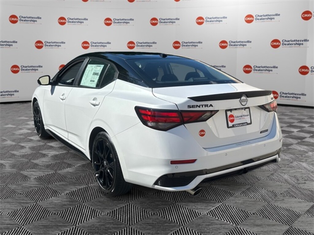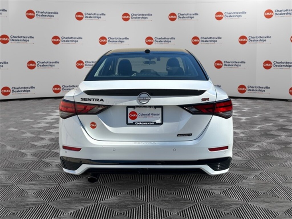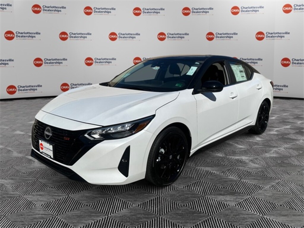 Aspen White Tricoat/Super Black 2025 Nissan Sentra SR FWD CVT with Xtronic 2.0L I4 DOHC CVT with Xtronic, Sport Cloth, 18" Alloy Wheels, 18" Black Alloy Wheels, 2-Tone Premium Paint, 4-Wheel Disc Brakes, 8 Speakers, ABS brakes, Air Conditioning, Alloy wheels, AM/FM radio: SiriusXM, Auto High-beam Headlights, Automatic temperature control, Black Exterior Badging, Black Painted V-Motion Grille, Blind Spot Warning, Brake assist, Bumpers: body-color, Carpeted Floor Mats w/Trunk Mat, Clear Rear Bumper Protector, Dash Cam - Dual Camera Drive Recorder, Delay-off headlights, Door Sill Plates, Driver door bin, Driver vanity mirror, Dual front impact airbags, Dual front side impact airbags, Electronic Stability Control, Four wheel independent suspension, Front anti-roll bar, Front Bucket Seats, Front Center Armrest, Front dual zone A/C, Front reading lights, Fully automatic headlights, Heated door mirrors, Heated Front Bucket Seats, Heated front seats, Illuminated entry, Knee airbag, Leather Shift Knob, Low tire pressure warning, Midnight Edition, NissanConnect featuring Apple CarPlay and Android Auto, Occupant sensing airbag, Outside temperature display, Overhead airbag, Overhead console, Panic alarm, Passenger door bin, Passenger vanity mirror, Power door mirrors, Power steering, Power windows, Radio data system, Radio: AM/FM w/RDS/MP3/Aux-In, Rear anti-roll bar, Rear Parking Sensors, Rear seat center armrest, Rear side impact airbag, Rear Spoiler, Rear window defroster, Remote keyless entry, Security system, Side Sills, Speed control, Speed-sensing steering, Split folding rear seat, Spoiler, Sport Cloth Seat Trim, Steering wheel mounted audio controls, Tachometer, Telescoping steering wheel, Tilt steering wheel, Traction control, Trip computer, Turn signal indicator mirrors, Variably intermittent wipers, CVT with Xtronic, Sport Cloth.