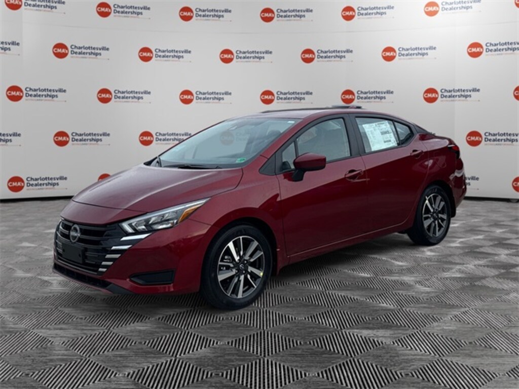 Scarlet Ember Tintcoat 2025 Nissan Versa 1.6 SV FWD CVT 1.6L I4 DOHC 16V 16" Aluminum Alloy Wheels, 4 Speakers, ABS brakes, Air Conditioning, Alloy wheels, Apple CarPlay/Android Auto, Auto High-beam Headlights, Blind Spot Warning, Brake assist, Bumpers: body-color, Carpeted Floor Mats & Trunk Mat (5-Piece Set), Delay-off headlights, Driver door bin, Driver vanity mirror, Dual front impact airbags, Dual front side impact airbags, Electronic Stability Control, Front anti-roll bar, Front Bucket Seats, Front Center Armrest, Front reading lights, Front wheel independent suspension, Fully automatic headlights, Heated door mirrors, Illuminated entry, Knee airbag, Low tire pressure warning, Occupant sensing airbag, Outside temperature display, Overhead airbag, Panic alarm, Passenger door bin, Passenger vanity mirror, Power door mirrors, Power steering, Power windows, Premium Paint, Radio data system, Radio: AM/FM Audio System, Rear Parking Sensors, Rear side impact airbag, Rear window defroster, Remote keyless entry, Shopping Bag Hooks, Speed control, Splash Guards, Split folding rear seat, Steering wheel mounted audio controls, Tachometer, Telescoping steering wheel, Tilt steering wheel, Traction control, Trip computer, Trunk Net, Trunk Package, Upgraded Cloth Seat Trim, USB Charging Cable Set, Variably intermittent wipers.