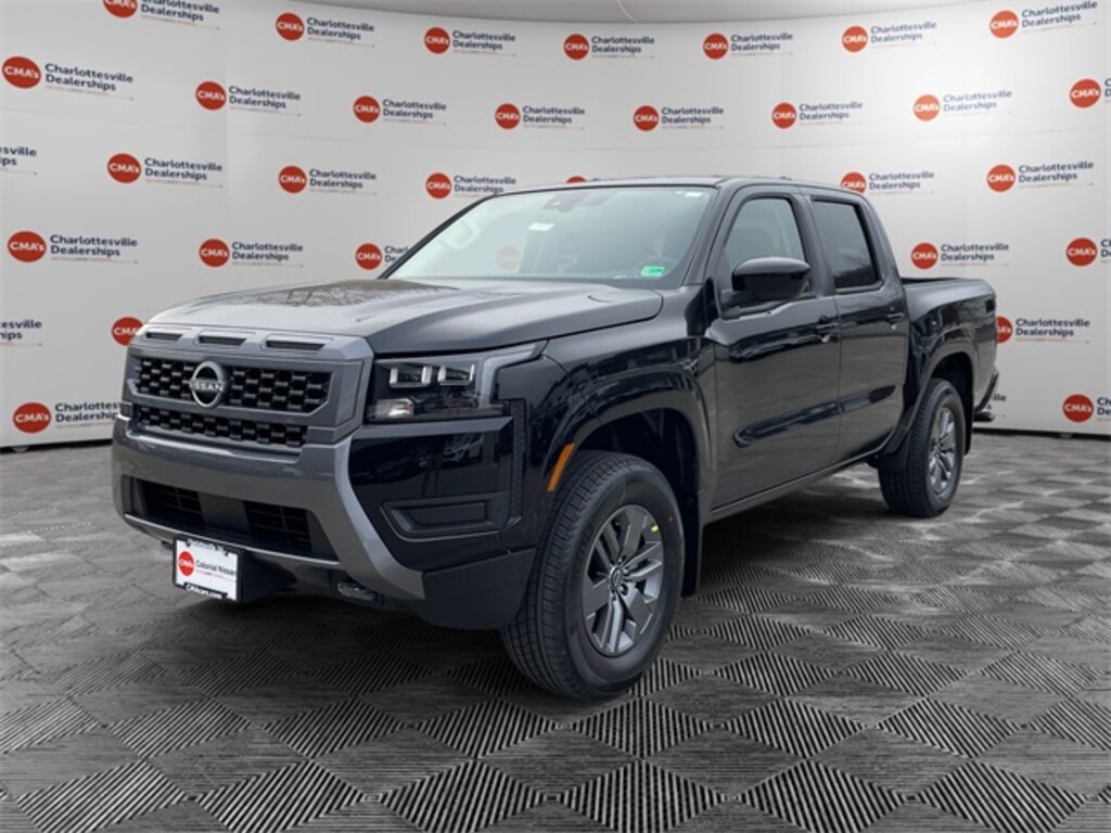 Super Black 2026 Nissan Frontier SV 4WD 9-Speed Automatic with Overdrive 3.8L DI DOHC 24V V6 4WD, 17" Alloy Wheels, 3.692 Axle Ratio, 4-Wheel Disc Brakes, 6 Speakers, ABS brakes, Air Conditioning, Alloy wheels, AM/FM radio: SiriusXM, Anti-whiplash front head restraints, Auto High-beam Headlights, Blind Spot Warning, Brake assist, Bumpers: body-color, Carpeted Floor Mats, Delay-off headlights, Driver door bin, Driver vanity mirror, Drop-In Bed Liner & Bumper Step, Dual front impact airbags, Dual front side impact airbags, Electronic Stability Control, Emergency communication system, Front anti-roll bar, Front Bucket Seats, Front Center Armrest, Front reading lights, Front wheel independent suspension, Fully automatic headlights, Illuminated entry, Knee airbag, Low tire pressure warning, Occupant sensing airbag, Overhead airbag, Overhead console, Panic alarm, Passenger door bin, Passenger vanity mirror, Power door mirrors, Power driver seat, Power steering, Power windows, Premium Cloth Seat Trim, Radio data system, Radio: SXM/AM/FM/AUX/USB Audio System, Rear anti-roll bar, Rear seat center armrest, Rear side impact airbag, Rear step bumper, Remote keyless entry, Security system, Speed control, Speed-sensing steering, Splash Guards, Split folding rear seat, Steering wheel mounted audio controls, Tachometer, Telescoping steering wheel, Tilt steering wheel, Tow Package, Tow/Haul Mode Switch, Traction control, Trip computer, Variably intermittent wipers, Voltmeter, Wireless Apple CarPlay/Wireless Android Auto, 4WD.