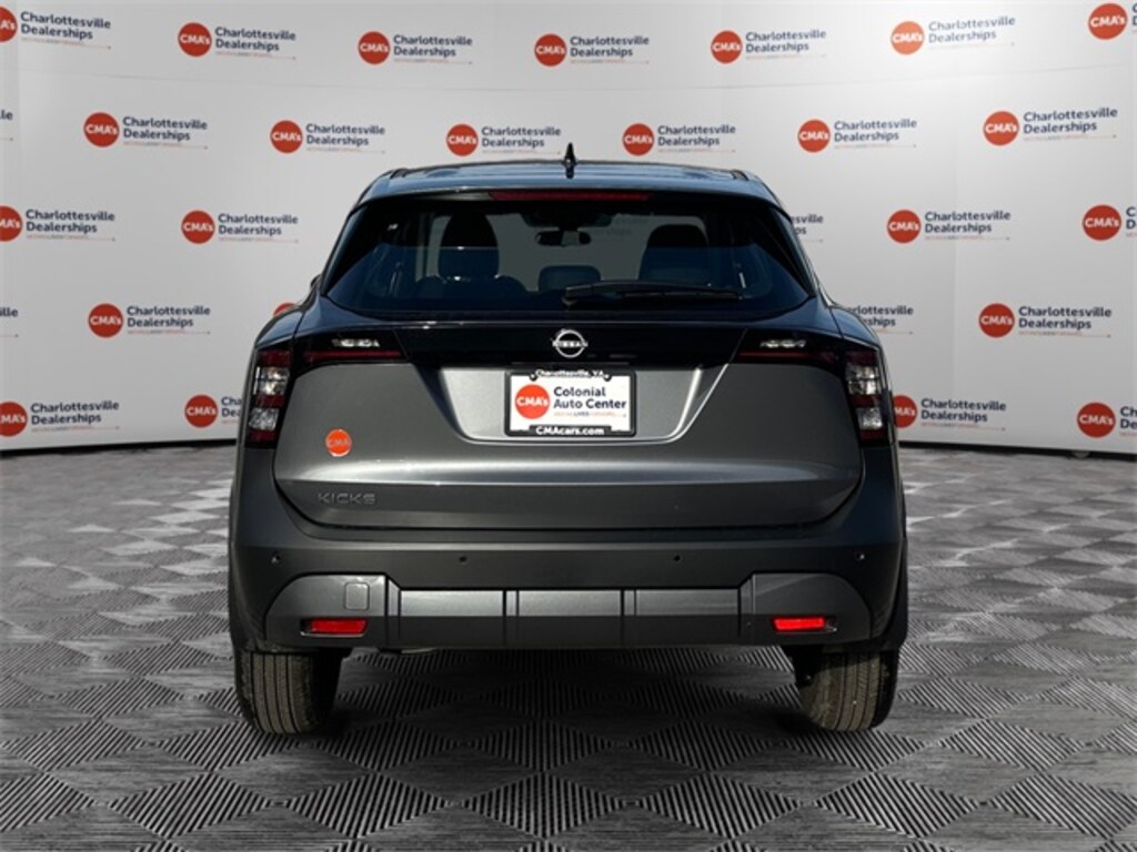 Gun Metallic 2026 Nissan Kicks S FWD CVT with Xtronic 2.0L DOHC 16" Steel Wheels w/Full Covers, 4 Speakers, 4-Wheel Disc Brakes, ABS brakes, Air Conditioning, AM/FM radio, Auto High-beam Headlights, Blind Spot Warning, Brake assist, Bumpers: body-color, Carpeted Floor Mats & Cargo Mat, Cloth Seat Trim, Driver door bin, Driver vanity mirror, Driver's Seat Mounted Armrest, Dual front impact airbags, Dual front side impact airbags, Electronic Stability Control, Emergency communication system, Exterior Parking Camera Rear, Front anti-roll bar, Front Bucket Seats, Front reading lights, Front wheel independent suspension, Fully automatic headlights, Illuminated entry, Knee airbag, Low tire pressure warning, NissanConnect featuring Apple CarPlay and Android Auto, Occupant sensing airbag, Outside temperature display, Overhead airbag, Panic alarm, Passenger door bin, Passenger vanity mirror, Power door mirrors, Power steering, Power windows, Radio data system, Radio: AM/FM/SiriusXM Audio System, Rear anti-roll bar, Rear reading lights, Rear side impact airbag, Rear window defroster, Rear window wiper, Remote keyless entry, Security system, Speed control, Speed-sensing steering, Splash Guards, Split folding rear seat, Spoiler, Sport steering wheel, Steering wheel mounted audio controls, Tachometer, Telescoping steering wheel, Tilt steering wheel, Traction control, Trip computer, Variably intermittent wipers.