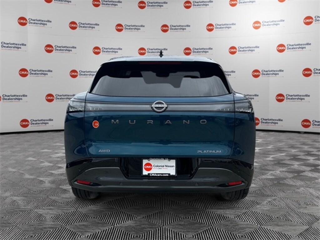 Aurora Blue Pearl Metallic 2026 Nissan Murano Platinum AWD 9-Speed Automatic I4 9-Speed Automatic, AWD, 10 Speakers, 21" Alloy Wheels, 3-Position Cargo Area Protector, 4-Wheel Disc Brakes, ABS brakes, Air Conditioning, Alloy wheels, AM/FM radio: SiriusXM w/360L, Auto High-beam Headlights, Auto tilt-away steering wheel, Auto-dimming Rear-View mirror, Automatic temperature control, Brake assist, Bumpers: body-color, Cargo Net, Cargo Package, Carpeted Floor & Cargo Mats, Child-Seat-Sensing Airbag, Compass, Delay-off headlights, Driver door bin, Driver vanity mirror, Dual front impact airbags, Dual front side impact airbags, Electronic Stability Control, Emergency communication system: NissanConnect Services, First Aid Kit, Four wheel independent suspension, Front anti-roll bar, Front Bucket Seats, Front Center Armrest, Front dual zone A/C, Front reading lights, Fully automatic headlights, Garage door transmitter: HomeLink, Heads-Up Display, Heated & Ventilated Front Bucket Seats w/Massage, Heated door mirrors, Heated front seats, Heated rear seats, Heated steering wheel, Illuminated entry, Illuminated Kick Plates, Knee airbag, Low tire pressure warning, Memory seat, Navigation system: NissanConnect with Navigation and Services, Occupant sensing airbag, Outside temperature display, Overhead airbag, Overhead console, Painted Splash Guards, Panic alarm, Passenger door bin, Passenger vanity mirror, Power door mirrors, Power driver seat, Power Liftgate, Power moonroof: Panoramic, Power passenger seat, Power steering, Power windows, Premium Paint, Quilted Semi-Aniline Leather-Appointed Seat Trim, Radio data system, Radio: NissanConnect w/Hybrid Radio, Rain sensing wipers, Rear anti-roll bar, Rear reading lights, Rear seat center armrest, Rear side impact airbag, Rear window defroster, Rear window wiper, Remote keyless entry, Retractable Cargo Cover, Security system, Speed control, Speed-Sensitive Wipers, Split folding rear seat, Spoiler, Steering wheel memory, Steering wheel mounted audio controls, Tachometer, Telescoping steering wheel, Tilt steering wheel, Traction control, Trip computer, Turn signal indicator mirrors, Variably intermittent wipers, Ventilated front seats, Wireless Apple CarPlay/Wireless Android Auto, 9-Speed Automatic, AWD.