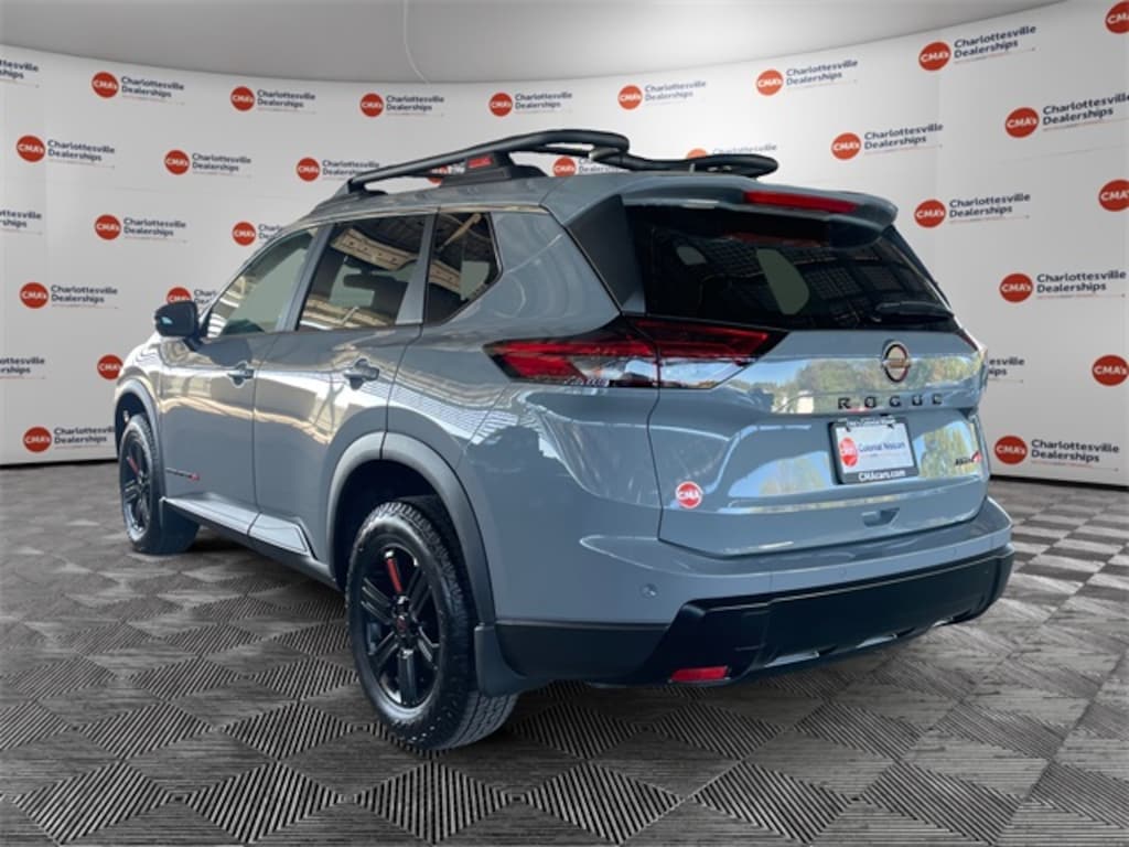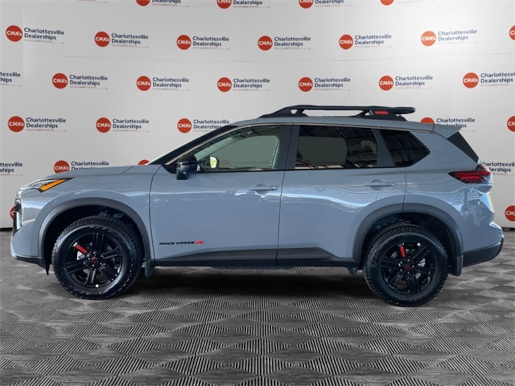 Boulder Gray Pearl 2026 Nissan Rogue Rock Creek AWD CVT with Xtronic 1.5L DOHC AWD, 4-Way Power Passenger Seat, 4-Wheel Disc Brakes, 6 Speakers, ABS brakes, Air Conditioning, Alloy wheels, AM/FM radio: Sirius, Apple CarPlay/Android Auto, Auto High-beam Headlights, Auto-Dimming Inside Mirror, Automatic temperature control, Black Splash Guards (Set of 4), Brake assist, Delay-off headlights, Driver door bin, Driver vanity mirror, Dual front impact airbags, Dual front side impact airbags, Electronic Stability Control, Emergency communication system: NissanConnect Services, Four wheel independent suspension, Front anti-roll bar, Front Bucket Seats, Front Center Armrest, Front dual zone A/C, Front reading lights, Fully automatic headlights, Heated door mirrors, Heated Front Bucket Seats, Heated front seats, Illuminated entry, Interior LED Accent Lighting, Knee airbag, Leatherette & Ballistic Nylon Seating, Low tire pressure warning, Memory Driver Seat & Outside Mirrors, Motion-Activated Power Liftgate, Occupant sensing airbag, Outside temperature display, Overhead airbag, Overhead console, Panic alarm, Passenger door bin, Passenger vanity mirror, Power door mirrors, Power driver seat, Power Liftgate, Power steering, Power windows, Premium Paint, Radio data system, Radio: AM/FM NissanConnect, Rear anti-roll bar, Rear seat center armrest, Rear side impact airbag, Rear window defroster, Rear window wiper, Remote keyless entry, Reverse Tilt-Down Outside Mirrors, Rock Creek Premium Package, Roof rack, Speed control, Speed-sensing steering, Speed-Sensitive Wipers, Split folding rear seat, Spoiler, Steering wheel mounted audio controls, Tachometer, Telescoping steering wheel, Tilt steering wheel, Traction control, Trip computer, USB Charging Cable Set, Variably intermittent wipers, Wheels: 17" Dark Painted Alloy, Wireless Charging Pad, AWD.