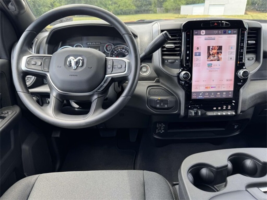 115V Auxiliary Front Power Outlet, 12" Touchscreen Display, 2 Way Rear Headrest Seat, 4 Way Front Headrests, 4-Wheel Disc Brakes, 40/20/40 Split Bench Seat, 400W Inverter, 4G LTE Wi-Fi Hot Spot, 5th Wheel/Gooseneck Towing Prep Group, 6 Speakers, ABS brakes, Air Conditioning, Air Conditioning ATC w/Dual Zone Control, Alexa Built-In, AM/FM radio: SiriusXM, Anti-Spin Differential Rear Axle, Apple CarPlay, Apple CarPlay/Android Auto, Auto-Dimming Rear-View Mirror, Black Exterior Mirrors, Black Wheel Center Hub, Brake assist, Bright Front Bumper, Bright Rear Bumper, Carpet Floor Covering, Center Hub, Chrome Grille Surround, Cloth 40/20/40 Bench Seat, Compass, Connected Travel & Traffic Services, Connectivity - US/Canada, Delay-off headlights, Disassociated Touchscreen Display, Driver door bin, Dual front impact airbags, Dual front side impact airbags, Electronic Stability Control, Emergency Vehicle Alert System (EVAS), Exterior 115V AC Outlet, Exterior Mirrors Courtesy Lamps, Exterior Mirrors w/Heating Element, Exterior Mirrors w/Supplemental Signals, Front & Rear Floor Mats, Front anti-roll bar, Front Armrest w/Cupholders, Front Center Armrest w/Storage, Front fog lights, Front License Plate Bracket, Front reading lights, Fully automatic headlights, Global Telematics Box Module (TBM), Google Android Auto, GPS Antenna Input, GPS Navigation, HD Radio, Heavy Duty Vinyl 40/20/40 Split Bench Seat, Illuminated entry, Integrated Voice Command w/Bluetooth, Low tire pressure warning, Manual Adjust 4-Way Driver Seat, Manual Adjust 4-Way Front Passenger Seat, Manual Folding Exterior Mirrors, Manual Telescoping Mirrors, Manufacturer's Statement of Origin, Matte Black Mesh Grille w/Chrome, Mirror Running Lights, Mopar Black Tubular Side Steps, Occupant sensing airbag, Off-Road Info Pages, Outside temperature display, Overhead airbag, Overhead console, Panic alarm, ParkSense Front/Rear Park Assist System, ParkView Rear Back-Up Camera, Passenger door bin, Passenger vanity mirror, Power Adjust Mirrors, Power Adjustable Convex Aux Mirrors, Power Heated Folding Telescope Mirrors, Power steering, Power windows, Quick Order Package 24A Tradesman, Radio data system, Radio: Uconnect 5 Nav w/12.0" Display, Radio: Uconnect 5 w/8.4" Display, Rear anti-roll bar, Rear Folding Seat, Rear Power Sliding Window, Rear step bumper, Rear Wheelhouse Liners, Rear window defroster, Remote keyless entry, Remote USB Port - Charge Only, Selectable Tire Fill Alert, SiriusXM Radio Service, SiriusXM w/360L, Speed control, Storage Tray, Tachometer, Tilt steering wheel, Tinted Acoustic Windshield Glass, Traction control, Tradesman Level 2 Equipment Group, Trailer Tow Pages, Variably intermittent wipers, Voltmeter, Wheels: 17" x 7.5" Black Steel Styled, Wheels: 18" x 8.0" Steel Chrome Clad.