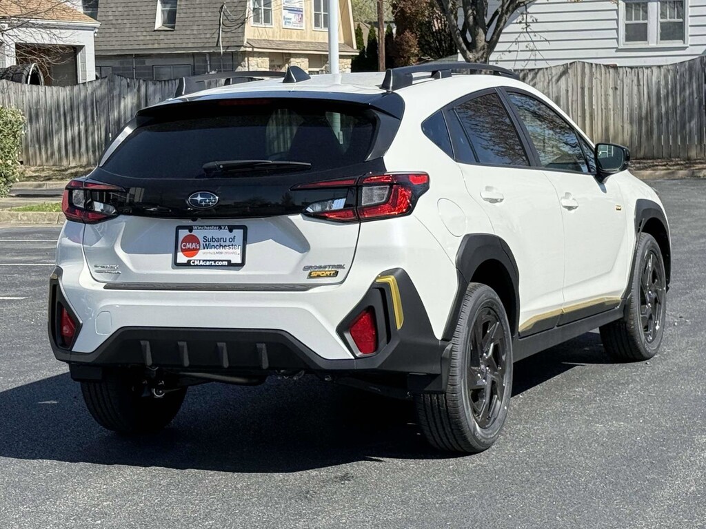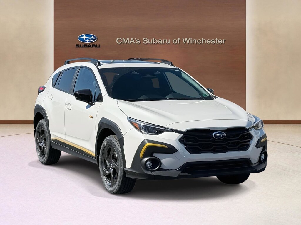 - GRAY SPORT CLOTH UPHOLSTERY -inc: yellow stitching,AUTO-DIMMING EXTERIOR MIRROR W/APPROACH LIGHT -inc: Part number J201SFN000,CROSSTREK MIRROR PACKAGE -inc: Auto-Dimming Mirror w/Compass & HomeLink Part number H501SFN000 Auto-Dimming Exterior Mirror w/Approach Light Part number J201SFN000,CRYSTAL WHITE PEARL,LED UPGRADE -inc: Part number H461SFL060,REAR BUMPER COVER -inc: Part number E771SFN000,BSD/RCTA & POWER DRIVER SEAT & POWER MOONROOF -inc: automatic emergency steering system off switch BSD/RCTA detection indicator exterior power mirrors rear radar detection sensors and lane change assist Rear Cross-Traffic Alert (RCTA) System off and malfunction warning indicator and audible vehicle detection warning 10-Way Power Driver's Seat 2-way lumbar support Blind Spot Detection (BSD) Power Moonroof tilt up and internal retracting w/auto-open/close and laminated UV and dark tint moonroof glass,REAR SEATBACK PROTECTOR -inc: Part number J501SFN240,AUTO-DIMMING MIRROR W/COMPASS & HOMELINK -inc: Part number H501SFN000,All Wheel Drive,Power Steering,ABS,4-Wheel Disc Brakes,Brake Assist,Brake Actuated Limited Slip Differential,Aluminum Wheels,Tires - Front Performance,Tires - Rear Performance,Temporary Spare Tire,Heated Mirrors,Power Mirror(s),Integrated Turn Signal Mirrors,Rear Defrost,Privacy Glass,Intermittent Wipers,Variable Speed Intermittent Wipers,Rear Spoiler,Power Door Locks,Daytime Running Lights,Automatic Headlights,Headlights-Auto-Leveling,LED Headlights,Automatic Highbeams,Fog Lamps,AM/FM Stereo,Satellite Radio,MP3 Capability,Bluetooth Connection,Auxiliary Audio Input,HD Radio,Smart Device Integration,Requires Subscription,Steering Wheel Audio Controls,Bucket Seats,Heated Front Seat(s),Pass-Through Rear Seat,Rear Bench Seat,Adjustable Steering Wheel,Trip Computer,Power Windows,WiFi Hotspot,Leather Steering Wheel,Remote Trunk Release,Keyless Entry,Power Door Locks,Keyless Start,Keyless Entry,Power Door Locks,Cruise Control,Adaptive Cruise Control,Climate Control,Multi-Zone A/C,A/C,Cloth Seats,Driver Vanity Mirror,Passenger Vanity Mirror,Driver Illuminated Vanity Mirror,Passenger Illuminated Visor Mirror,Floor Mats,Cargo Shade,Keyless Start,Smart Device Integration,Requires Subscription,Power Windows,Power Door Locks,Trip Computer,Security System,Immobilizer,Cruise Control Steering Assist,Traction Control,Stability Control,Traction Control,Front Side Air Bag,Lane Departure Warning,Lane Keeping Assist,Lane Departure Warning,Front Collision Mitigation,Driver Monitoring,Telematics,Requires Subscription,Tire Pressure Monitor,Driver Air Bag,Passenger Air Bag,Front Head Air Bag,Rear Head Air Bag,Passenger Air Bag Sensor,Knee Air Bag,Child Safety Locks,Back-Up Camera