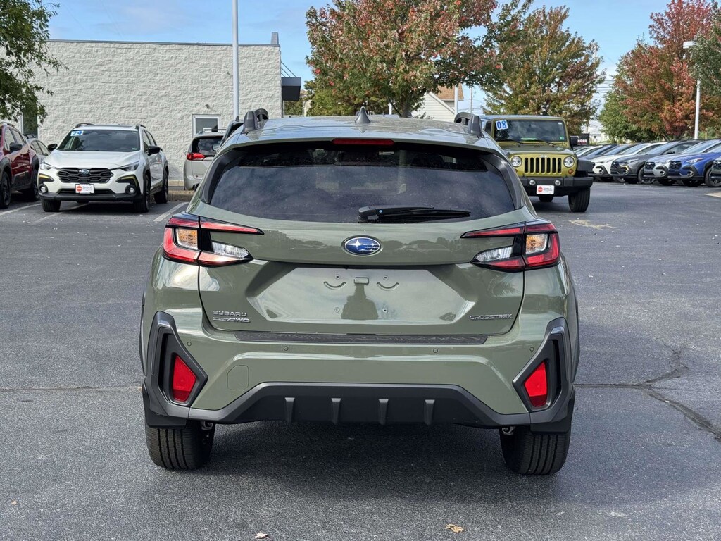 - AUTO-DIMMING MIRROR W/COMPASS & HOMELINK -inc: Part number H501SFN000,LED UPGRADE -inc: Part number H461SFL060,REAR SEATBACK PROTECTOR -inc: Part number J505SFN240,GRAY LEATHER-TRIMMED UPHOLSTERY -inc: orange stitching,CROSSTREK MIRROR PACKAGE -inc: Auto-Dimming Mirror w/Compass & HomeLink Part number H501SFN000 Auto-Dimming Exterior Mirror w/Approach Light Part number J201SFN001,REAR BUMPER COVER -inc: Part number E771SFN000,AUTO-DIMMING EXTERIOR MIRROR W/APPROACH LIGHT -inc: Part number J201SFN001,STANDARD MODEL,ALPINE GREEN,All Wheel Drive,Power Steering,ABS,4-Wheel Disc Brakes,Brake Assist,Brake Actuated Limited Slip Differential,Aluminum Wheels,Tires - Front Performance,Tires - Rear Performance,Temporary Spare Tire,Heated Mirrors,Power Mirror(s),Integrated Turn Signal Mirrors,Rear Defrost,Privacy Glass,Intermittent Wipers,Variable Speed Intermittent Wipers,Rear Spoiler,Power Door Locks,Daytime Running Lights,Automatic Headlights,Headlights-Auto-Leveling,LED Headlights,Automatic Highbeams,Fog Lamps,AM/FM Stereo,Satellite Radio,MP3 Capability,Bluetooth Connection,Auxiliary Audio Input,HD Radio,Smart Device Integration,Requires Subscription,MP3 Capability,Steering Wheel Audio Controls,Bluetooth Connection,Power Driver Seat,Bucket Seats,Heated Front Seat(s),Driver Adjustable Lumbar,Pass-Through Rear Seat,Rear Bench Seat,Adjustable Steering Wheel,Trip Computer,Power Windows,WiFi Hotspot,Leather Steering Wheel,Remote Trunk Release,Keyless Entry,Power Door Locks,Keyless Start,Keyless Entry,Power Door Locks,Cruise Control,Adaptive Cruise Control,Climate Control,Multi-Zone A/C,A/C,Leather Seats,Driver Vanity Mirror,Passenger Vanity Mirror,Driver Illuminated Vanity Mirror,Passenger Illuminated Visor Mirror,Floor Mats,Cargo Shade,Keyless Start,Smart Device Integration,Smart Device Integration,Requires Subscription,Power Windows,Power Door Locks,Trip Computer,Security System,Immobilizer,Cruise Control Steering Assist,Traction Control,Stability Control,Traction Control,Front Side Air Bag,Lane Departure Warning,Lane Keeping Assist,Lane Departure Warning,Front Collision Mitigation,Driver Monitoring,Telematics,Requires Subscription,Blind Spot Monitor,Cross-Traffic Alert,Rear Collision Mitigation,Evasion Assist,Tire Pressure Monitor,Driver Air Bag,Passenger Air Bag,Front Head Air Bag,Rear Head Air Bag,Passenger Air Bag Sensor,Knee Air Bag,Child Safety Locks,Back-Up Camera