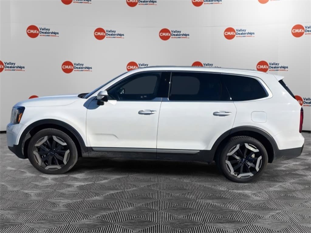 *BACKUP CAMERA*, *BLUETOOTH*, *HEATED SEATS*, *INCLUDES WARRANTY*, *RECENT TRADE IN*, *THIRD ROW SEATING*, *KEYLESS START*, Telluride S, 4D Sport Utility, 3.8L V6 DOHC, 8-Speed Automatic, AWD, Glacial White Pearl, Black Artificial Leather, 3rd row seats: split-bench, 4-Wheel Disc Brakes, 6 Speakers, ABS brakes, Air Conditioning, All Weather Floor Mats, Alloy wheels, AM/FM radio: SiriusXM, Apple CarPlay & Android Auto, Auto High-beam Headlights, Auto-Dimming Mirror w/HomeLink, Automatic temperature control, Brake assist, Bumpers: body-color, Delay-off headlights, Driver door bin, Driver vanity mirror, Dual front impact airbags, Dual front side impact airbags, Electronic Stability Control, Emergency communication system: 911 Connect, Exterior Parking Camera Rear, Four wheel independent suspension, Front anti-roll bar, Front Bucket Seats, Front Center Armrest, Front dual zone A/C, Front reading lights, Fully automatic headlights, Heated door mirrors, Heated Front Bucket Seats, Heated front seats, Illuminated entry, Knee airbag, Leather Shift Knob, Leather steering wheel, Low tire pressure warning, Navigation System, Occupant sensing airbag, Outside temperature display, Overhead airbag, Overhead console, Panic alarm, Passenger door bin, Passenger vanity mirror, Power door mirrors, Power driver seat, Power Liftgate, Power moonroof, Power steering, Power windows, Radio data system, Radio: AM/FM Display Audio System, Rear air conditioning, Rear anti-roll bar, Rear audio controls, Rear reading lights, Rear side impact airbag, Rear window defroster, Rear window wiper, Reclining 3rd row seat, Remote keyless entry, Security system, Speed control, Speed-sensing steering, Split folding rear seat, Spoiler, Steering wheel mounted audio controls, SynTex Synthetic Leather Seat Trim, Tachometer, Telescoping steering wheel, Tilt steering wheel, Traction control, Trip computer, Turn signal indicator mirrors, Variably intermittent wipers, Wheels: 20" x 7.5" Black Finish, Telluride S, 4D Sport Utility, 3.8L V6 DOHC, 8-Speed Automatic, AWD, Glacial White Pearl, Black Artificial Leather.